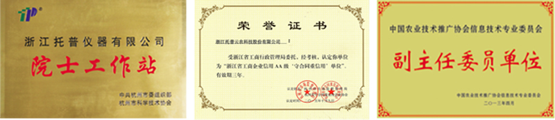托普云農(nóng)成立近10年,已被認(rèn)定為“國家高新技術(shù)企業(yè)”、“國家863項目承擔(dān)合作單位”、“國家級星火計劃立項單位”、“浙江省重大科技項目承擔(dān)單位”、“科技部中小企業(yè)創(chuàng)新基金項目立項單位”、“浙江省科技型中小企業(yè)”、“杭州市級高新技術(shù)企業(yè)研發(fā)中心”、“《中國農(nóng)技推廣》年度理事會副理事長單位”、“中國儀器儀表協(xié)會農(nóng)業(yè)儀器應(yīng)用技術(shù)分會常務(wù)理事單位”、“中國通信工業(yè)協(xié)會物聯(lián)網(wǎng)行業(yè)分會常務(wù)理事單位”、 “中國智慧城市規(guī)劃建設(shè)推進聯(lián)盟理事會理事單位”,2011年入選杭州市“雛鷹企業(yè)”一類企業(yè)、入圍年度“雛鷹杯”最具成長潛力企業(yè)20強”。
