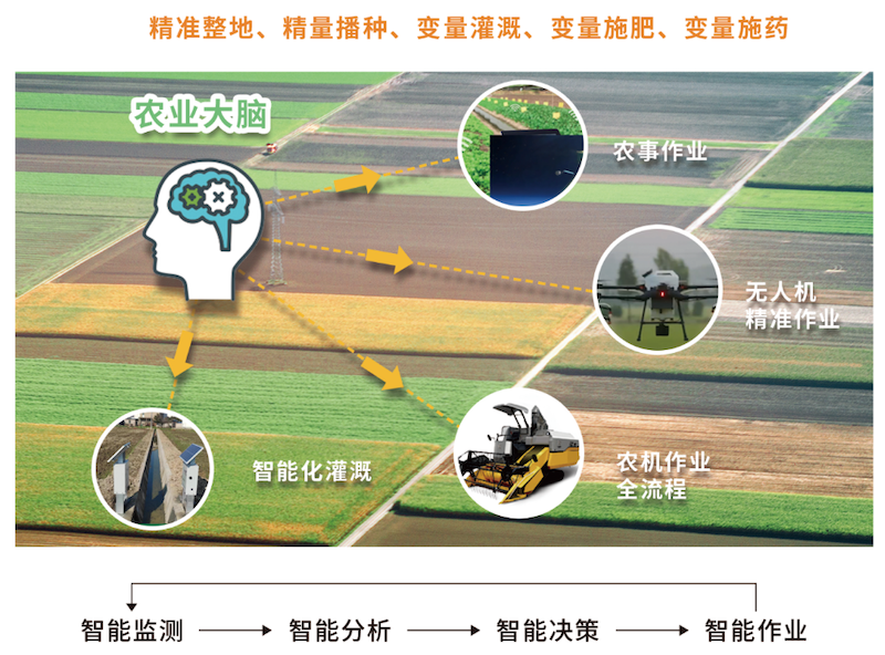 以北斗衛(wèi)星導(dǎo)航技術(shù)為基礎(chǔ),結(jié)合智能農(nóng)事建議,聯(lián)動智能裝備,實現(xiàn)大田生產(chǎn)全程作業(yè)機械化、管理可視化,農(nóng)場無人化。