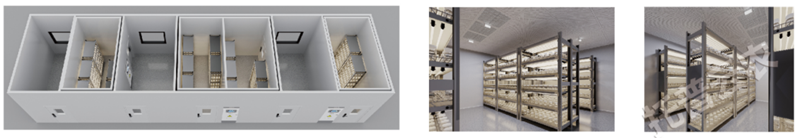 通過室內(nèi)環(huán)境模擬,研究林木生長全周期變化,根據(jù)用戶栽培作物高度科學(xué)合理定制排布培養(yǎng)架或頂置光源 |