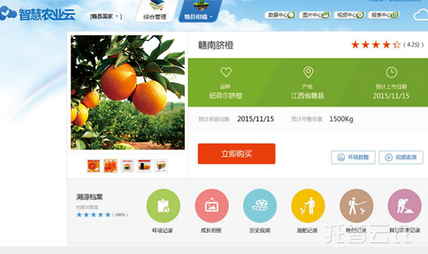 春秋農(nóng)莊在景徽菜籃子生鮮電商生態(tài)系統(tǒng)上,通過托普農(nóng)業(yè)物聯(lián)網(wǎng)系統(tǒng)建立臍橙質(zhì)量安全溯源檔案,向消費(fèi)者全方位地展示臍橙的生長環(huán)境、農(nóng)事管理(用肥用藥情況)、采摘等環(huán)節(jié),為消費(fèi)者提供真實(shí)可靠的產(chǎn)品信息,使之放心購買。