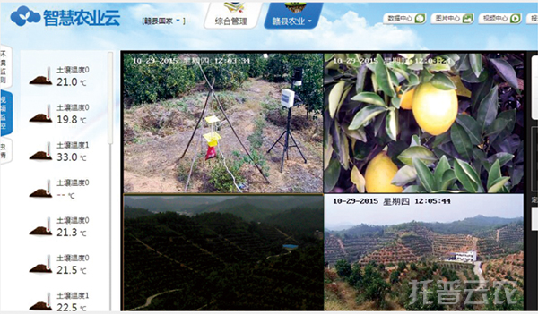 江西贛州的春秋農(nóng)莊是一家集臍橙種植與銷售、旅游觀光為一體的綠色生態(tài)企業(yè)。農(nóng)莊現(xiàn)種植臍橙1800余畝,在密集的橙樹林間,可以看到各式各樣的監(jiān)測(cè)儀器,它們是浙江托普云農(nóng)科技股份有限公司打造的農(nóng)業(yè)物聯(lián)網(wǎng)系統(tǒng),包括小型氣象站、高清攝像頭和蟲情測(cè)報(bào)燈等系統(tǒng)硬件。