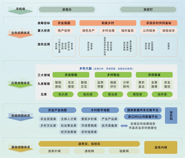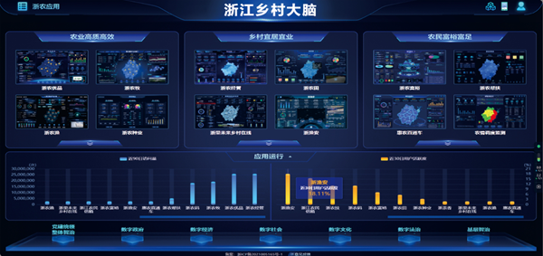 浙江省農(nóng)業(yè)農(nóng)村廳圍繞省委數(shù)字化改革決策部署,聚焦大腦監(jiān)測分析評價、預(yù)測預(yù)警和戰(zhàn)略目標(biāo)管理能力的新目標(biāo),大力推進(jìn)"浙江鄉(xiāng)村大腦 +浙農(nóng)系列應(yīng)用"體系建設(shè),迭代形成以"11153"核心構(gòu)架為支撐的"浙江鄉(xiāng)村大腦"(1個數(shù)據(jù)倉,1張全域地理信息圖,1個"浙農(nóng)碼”,5個庫為知識庫、規(guī)則庫、算法庫、模型庫和組件庫,3領(lǐng)域能力為農(nóng)業(yè)智能、鄉(xiāng)村智治、農(nóng)民智富),按照'一表一圖N清單"的方法,開發(fā)建設(shè)9個智能模塊,以數(shù)字技術(shù)助力農(nóng)業(yè)農(nóng)村現(xiàn)代化、鄉(xiāng)村振興和農(nóng)民農(nóng)村共同富裕。目前,"浙江鄉(xiāng)村大腦"已實(shí)現(xiàn)省市縣三級貫通。