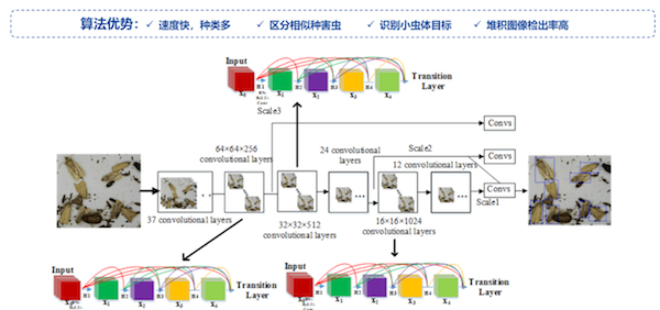 目前,托普云農(nóng)采用卷積神經(jīng)網(wǎng)絡深度學習的方法建立識別模型,已實現(xiàn)2063種農(nóng)業(yè)害蟲的智能識別。其中,二化螟、稻縱卷葉螟、玉米螟、棉鈴蟲、小菜蛾等國家一二類趨光性及主要農(nóng)林害蟲的識別準確率達到97.5%;稻飛虱、葉蟬、綠盲蝽等毫米級小蟲體識別準確率達90%以上。