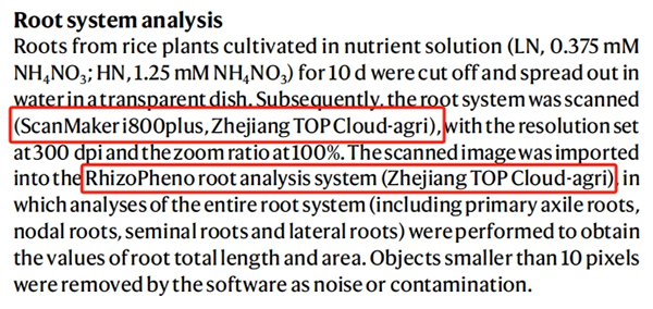 文獻(xiàn)引用托普根系表型分析系統(tǒng)GXY-A,在低氮條件下,與高氮相比,水稻植株的根系長(zhǎng)度和面積都有所增加粳稻品種顯示出比秈稻品種更小的根系,對(duì)外部氮變化的敏感性較低通過下調(diào)粳稻中的RNR10,可以改善其根系結(jié)構(gòu)、NO?−吸收能力以及地上部農(nóng)藝性狀,最終提高氮利用效率(NUE)和產(chǎn)量。