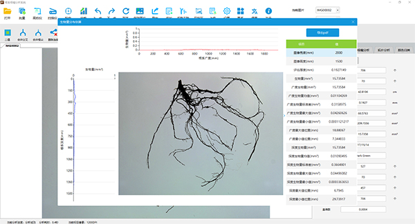 一鍵分析多項(xiàng)參數(shù):一鍵操作,即可獲取根系長(zhǎng)度、直徑、投影面積、表面積、體積、根尖數(shù)、分叉數(shù)以及估算根系廣度和深度維度上的生物量。
