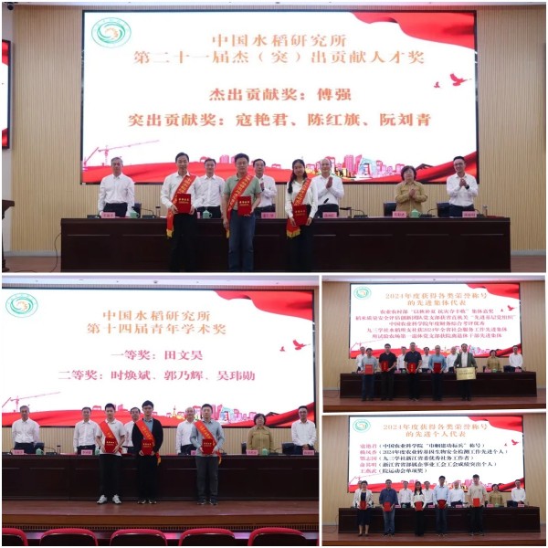 會上,中國水稻研究所相關領導為第二十一屆杰(突)出貢獻人才和第十四屆青年學術獎獲獎者頒獎,對2024年先進集體和個人進行通報表彰。姜仁華所長發(fā)表總結講話,他指出,“五一”表彰是水稻所的光榮傳統(tǒng),全所要切實承擔起國家隊的使命,在高質量發(fā)展中勇挑大梁,向新而行,以質圖強,大力弘揚科學家精神,強化創(chuàng)新文化建設,在科技支撐國家糧食安全、建設科技強國和農業(yè)強國的實踐中再立新功。