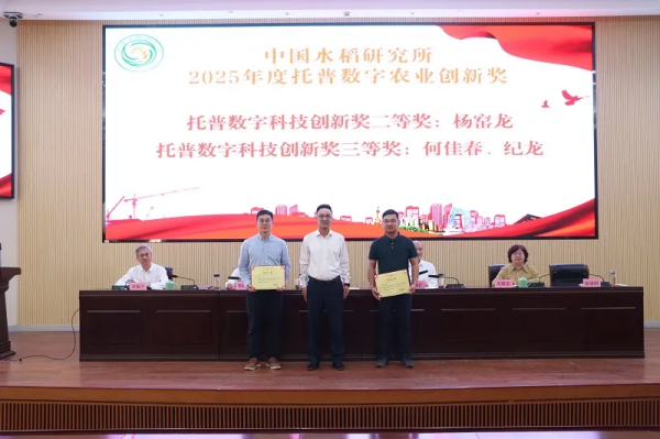 作為中國水稻研究所的戰(zhàn)略合作伙伴,托普云農董事長陳渝陽受邀參加本次會議,并為青年科學家頒發(fā)2025年度“托普數(shù)字農業(yè)創(chuàng)新獎”。該獎項依托“中稻-托普數(shù)字農業(yè)研究中心”設立,旨在推動水稻產業(yè)與信息化技術深度融合,孵化更多稻作技術創(chuàng)新裝備和智慧應用。