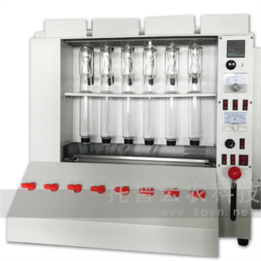 粗纖維測定儀是依據(jù)酸堿消煮法消煮樣品,并進(jìn)行重量測定來得到試樣粗纖維含量的儀器,可測量各種糧食、飼料、谷物、食品及其他農(nóng)副產(chǎn)品中粗纖維的含量,可同時(shí)測定6個(gè)樣品,同時(shí)具有自動(dòng)控溫的特點(diǎn)。