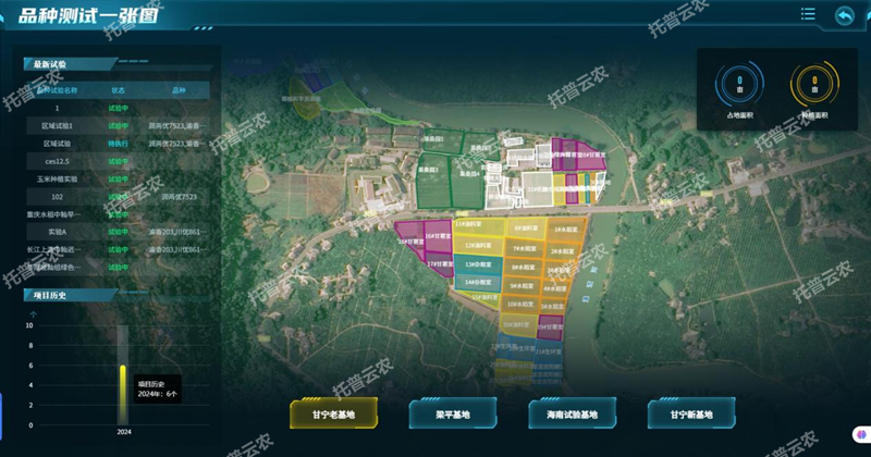 科研育種一張屏:GIS地圖展示基地的地塊劃分,團隊或課題小組的地塊分布;可視化展示團隊的育成品種總數(shù),以及各個團隊育成品種總數(shù)及歷年的趨勢;可視化展示優(yōu)勢品種的品種名,圖片及簡介信息,可視化展示課題組或團隊的簡介;可視化展示課題組或團隊的科研成果等成績。